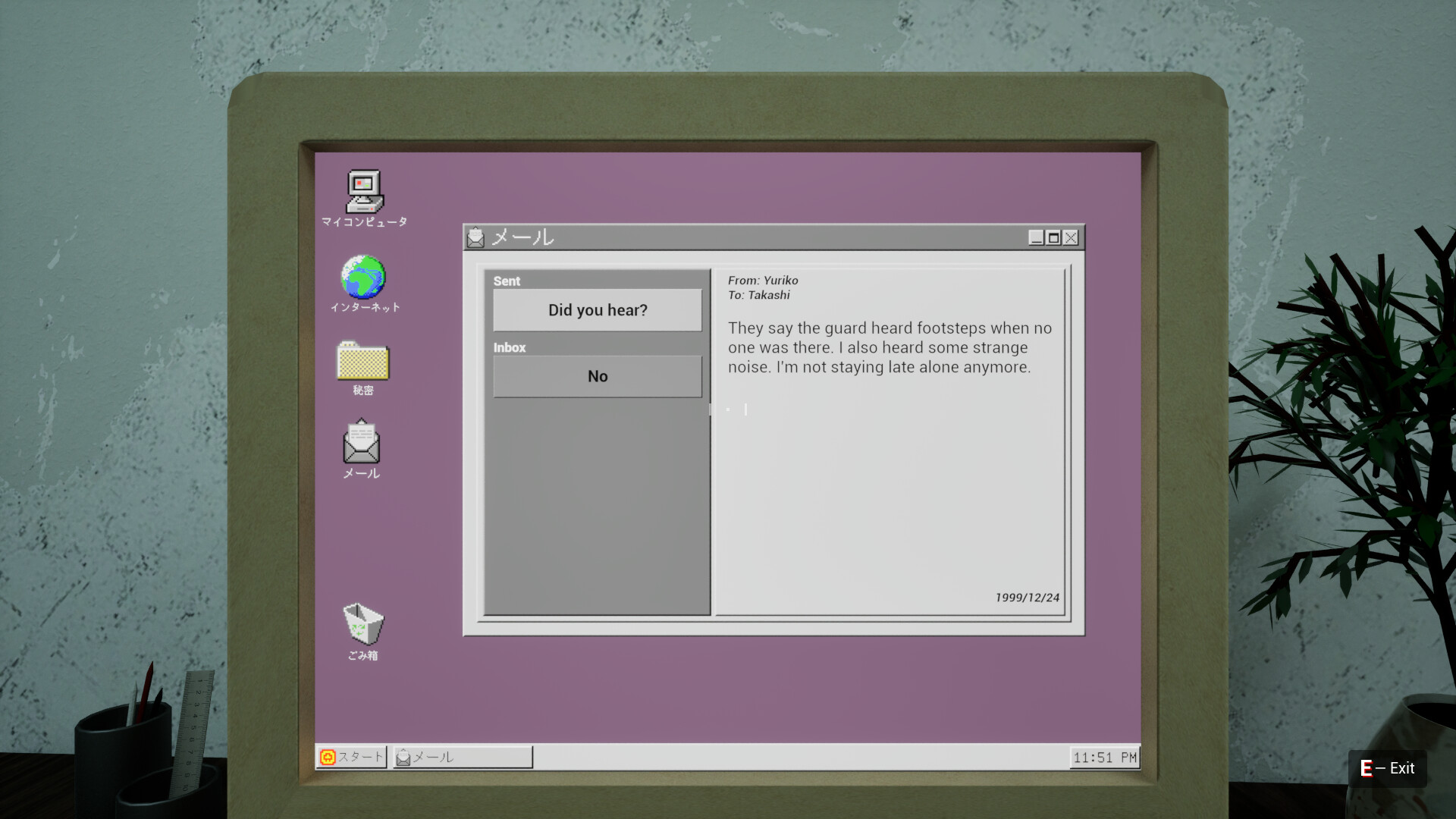 Find keys, codes, and notes. Boot up old PCs and piece together fragments of what happened here.