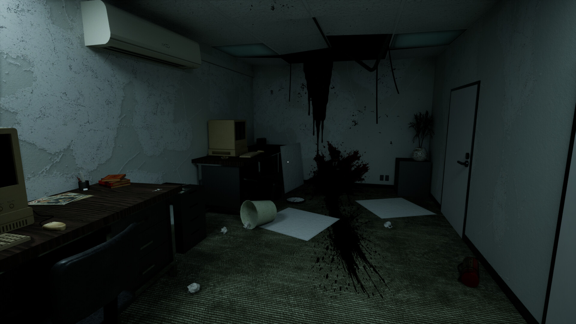• Atmospheric psychological horror in a realistic late-90s office