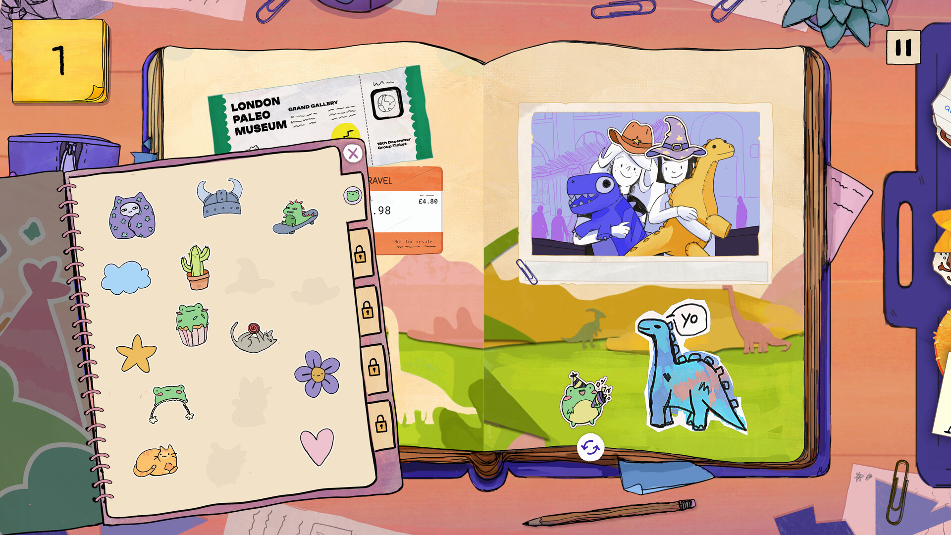 Of course, it wouldn't be scrapbooking without decoration - unlock the first set of stickers and use them to customise pages!