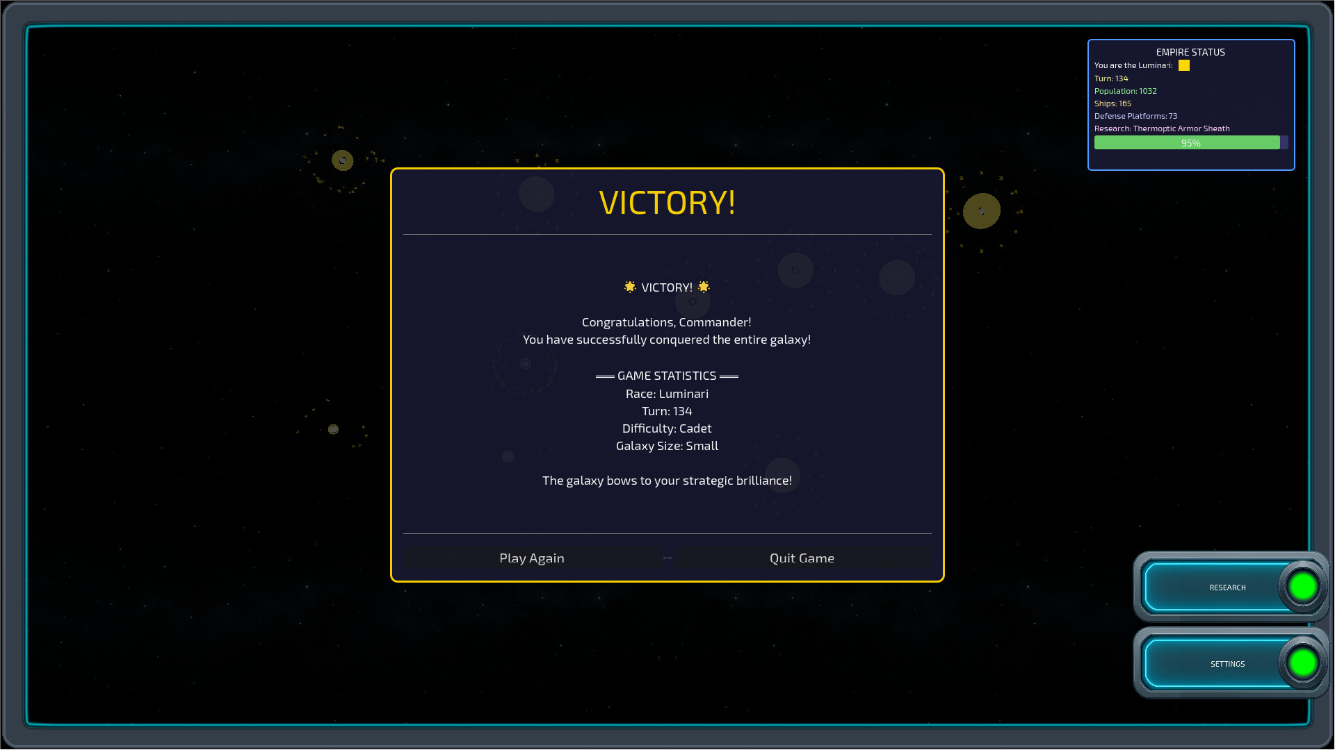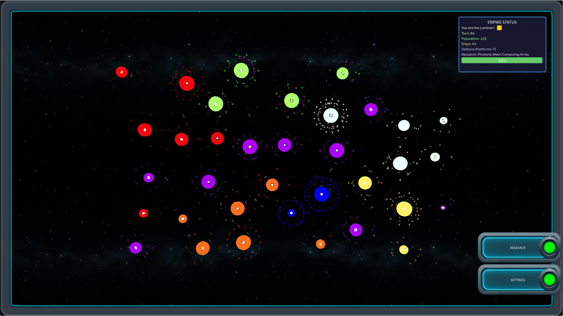 4X-RTS in space, 10–25 min games. Conquer every system or research the Singularity and ascend.”