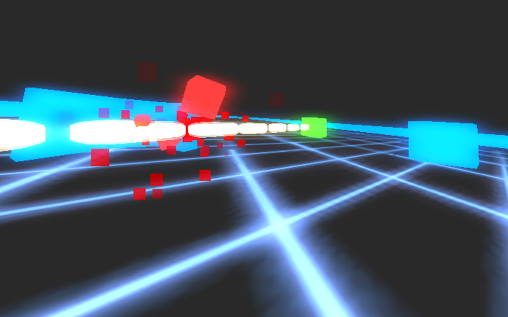 Bleeding Blocks is a 2D arena shooter. Two players face off in a single-screen deathmatch. Winning requires more than quick reflexes. Players must use cover and tactics to outsmart the enemy.