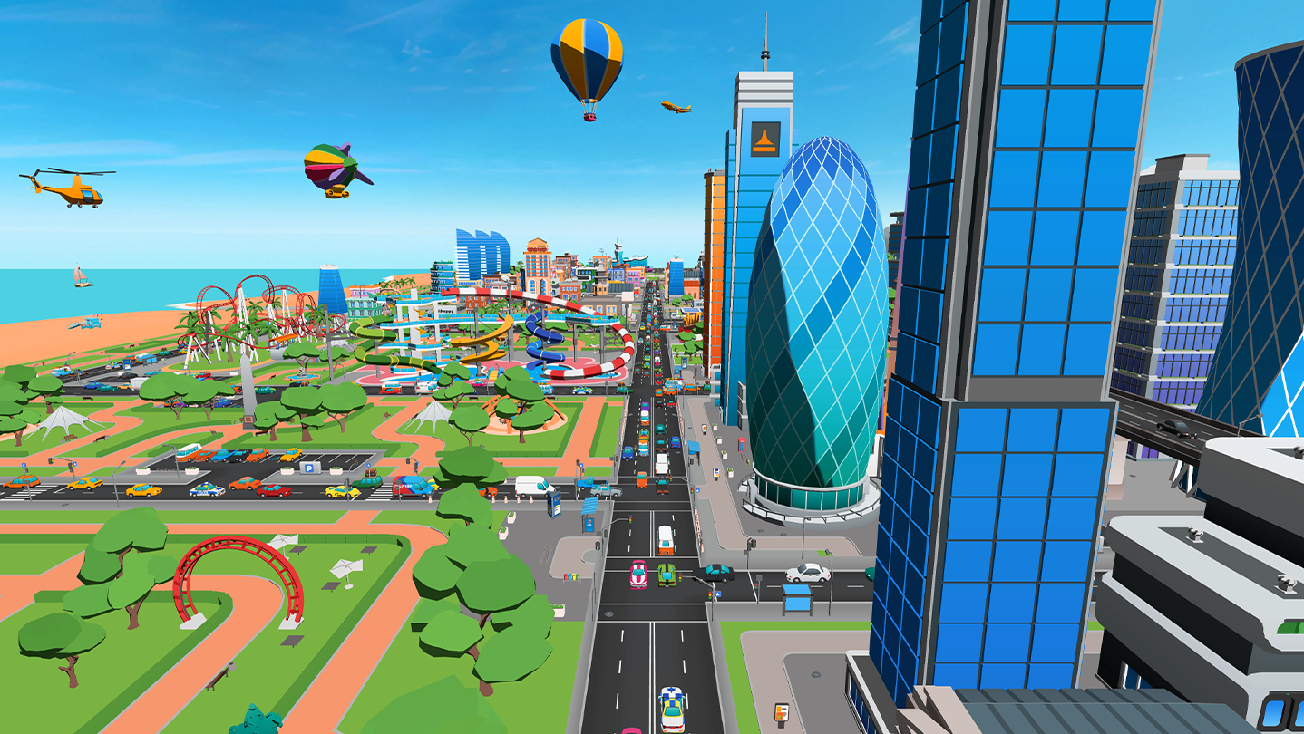 Progress through the city by unlocking new districts, each filled with unique tasks and surprises. Tear off parts of buildings, hunt for hidden items, or even activate massive structures. (And yes… you can totally try licking that giant ice cream cone.)