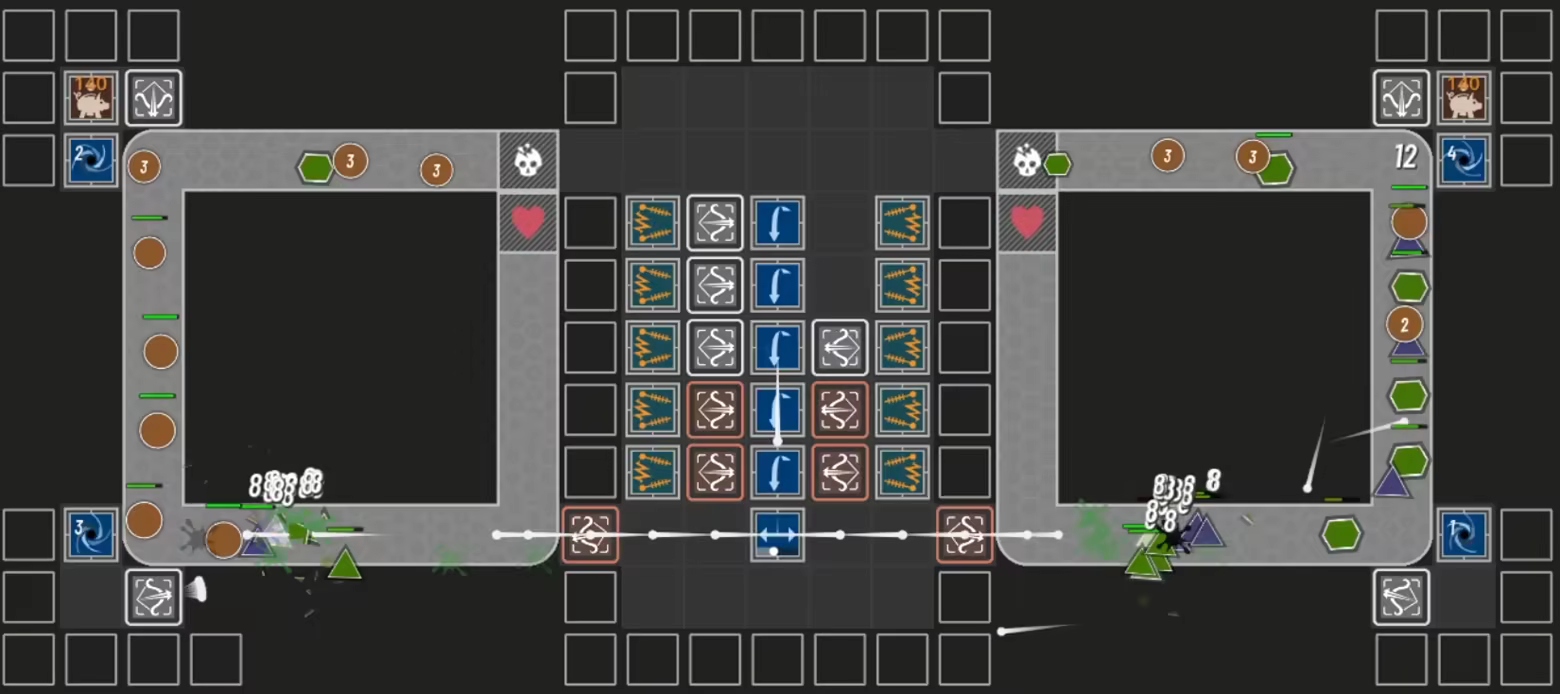 你需要通过防御塔生产子弹,并利用各种建筑对它们进行传送、分流、加速或转化,打造属于自己的“自动化子弹工厂”。