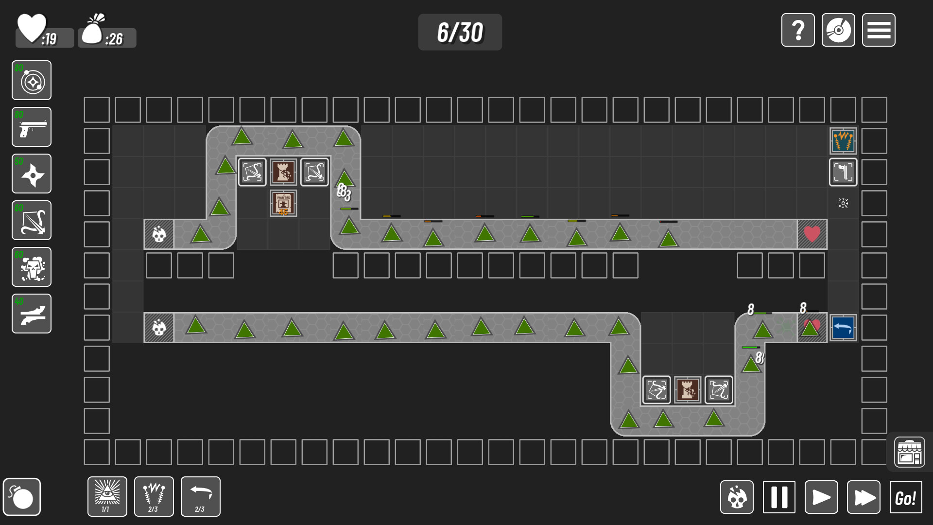 • You’ll need to plan towers and buildings carefully to counter different enemy types across each path.