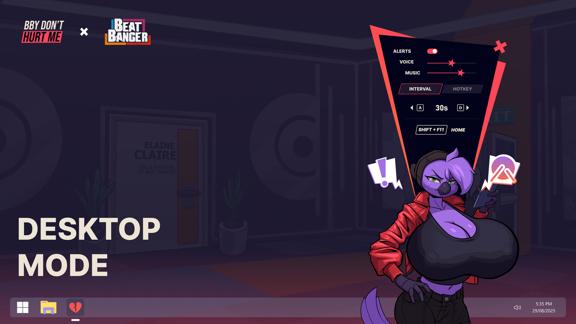• "Boob drums" rhythm mini-game on the desktop companion