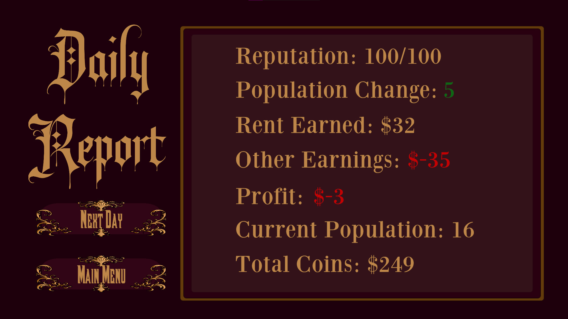 As you manage your town, the working members will come daily with updates to their own possible stories. These stories have many branching paths and can result in vastly different outcomes. What advantages or hinderances will come from these special requests?