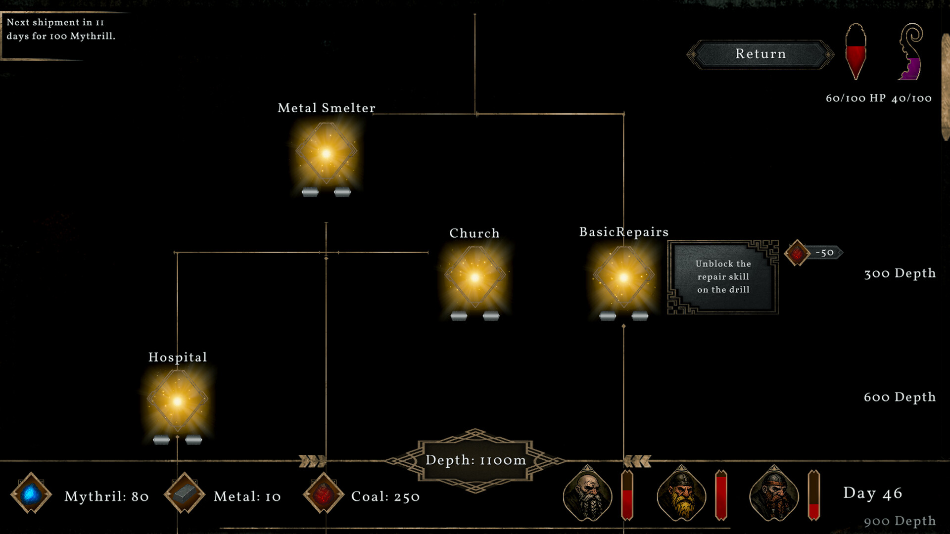Build and manage a remote drill outpost in this turn-based strategy game. Upgrade strategic machinery and level up your dwarfs. Balance resource management, strategic upgrades, and madness. If you drill too deeply, you may awaken what should not be awakened.