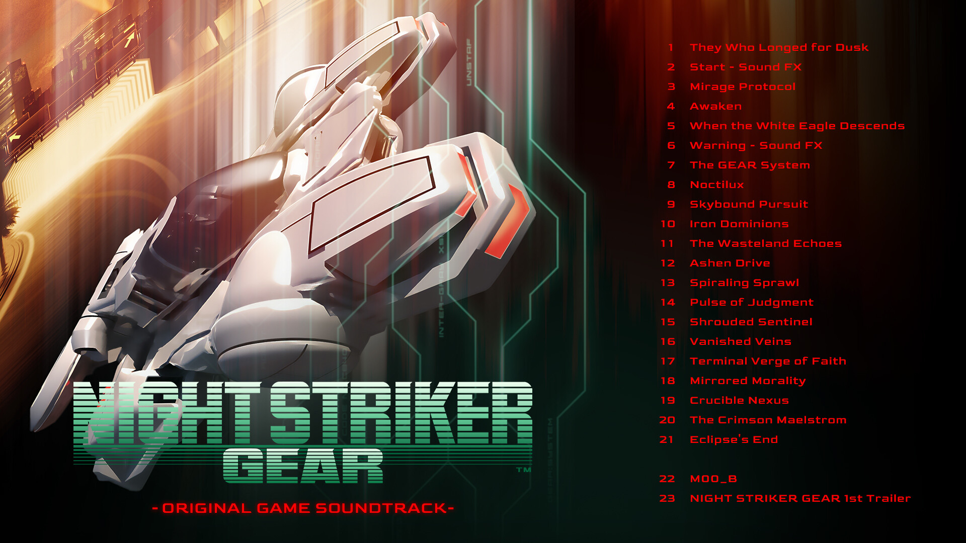 Soundtrack collection embellishing the dark, cinematic world of the 3D action shooter ‘NIGHT STRIKER GEAR’.