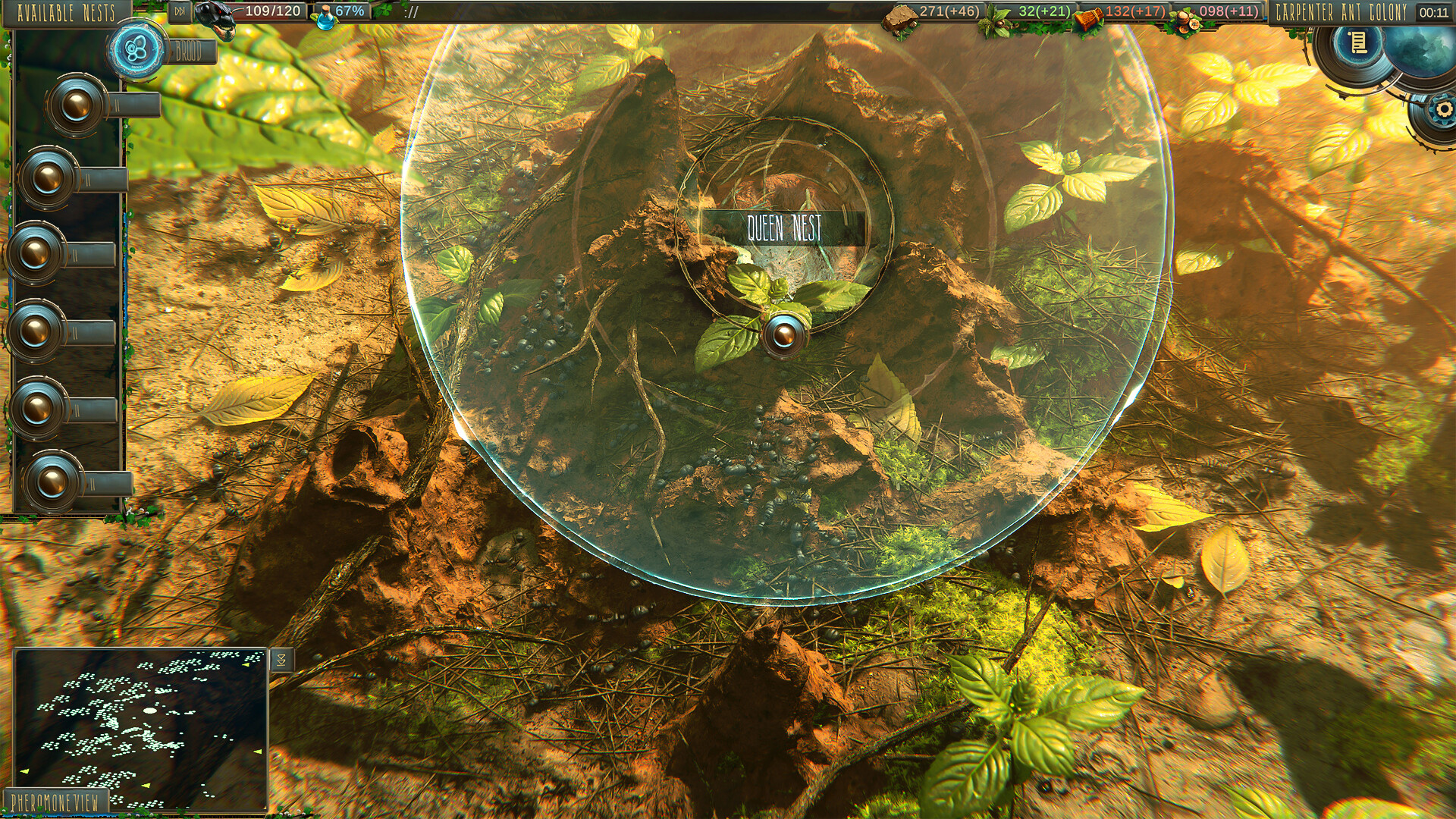 Your playstyle shapes your colony's very essence. Every action, from gathering a leaf to defeating a foe, alters your unique Pheromone blend of Prosperity, Adaptation, and Dominance. This dynamic system directly impacts your colony's evolution, unlocking specialized units, advanced structures, and powerful passive bonuses. Will you lead a thriving economic powerhouse, an endlessly adaptable swarm, or a terrifying legion of conquerors? Your scent defines your destiny.