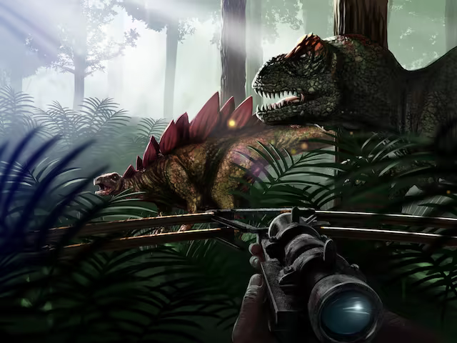 Dinosaur Hunt is a chaotic first person shooter that confronts heavily armed players with the most horrifying creatures that ever roamed the earth: Dinosaurs.