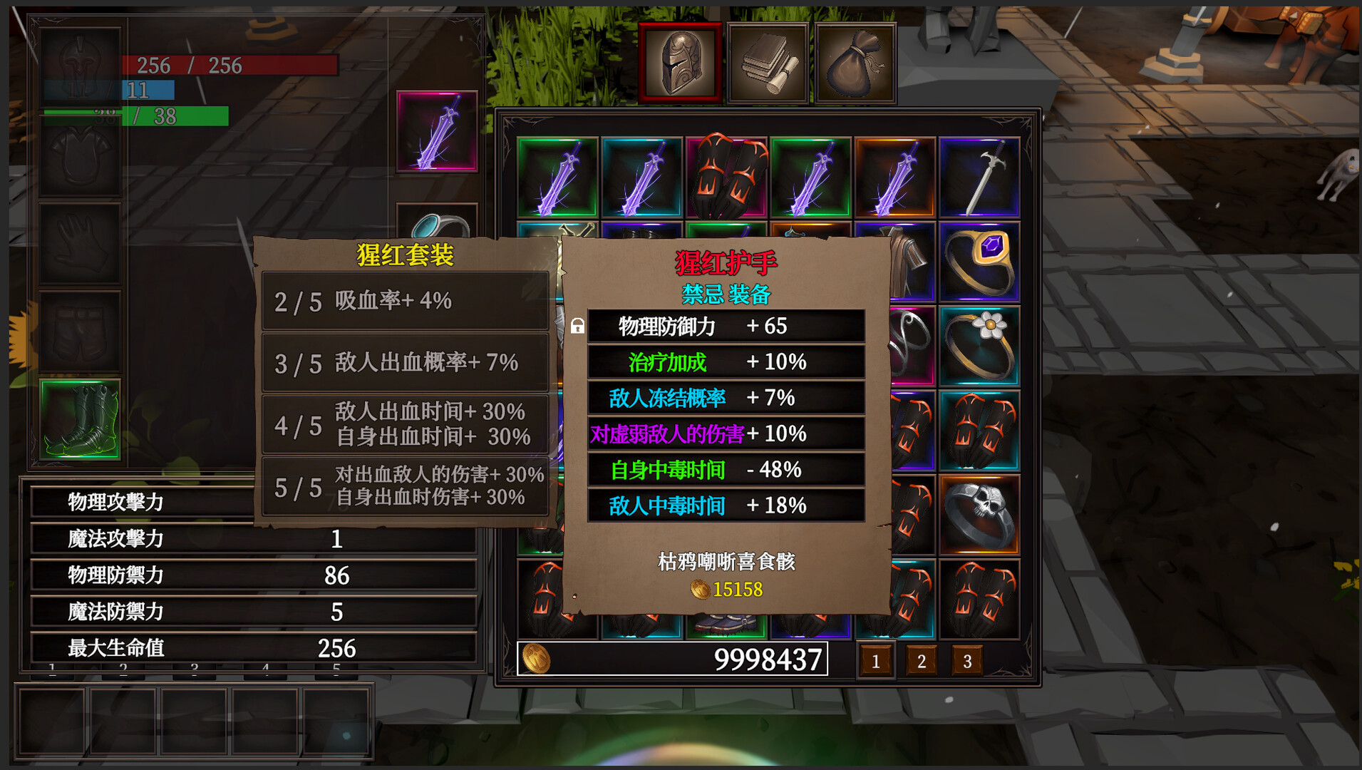 很多装备还有套装属性,穿戴一整套会使你更加强大!