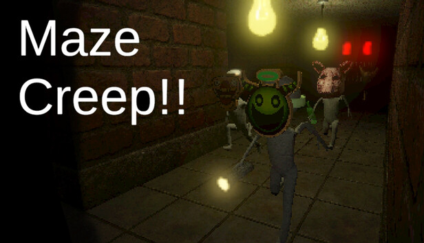 Maze Creep!! is a horror satire, where players explore procedurally generated mazes evading the all-hearing Maze Creep, as well as a large cast of other monsters. Collect resources in the maze to give yourself and your friends a better fighting chance. If your friends die, be sure to collect their revival orb, or be penalized. If you all die, you lose.