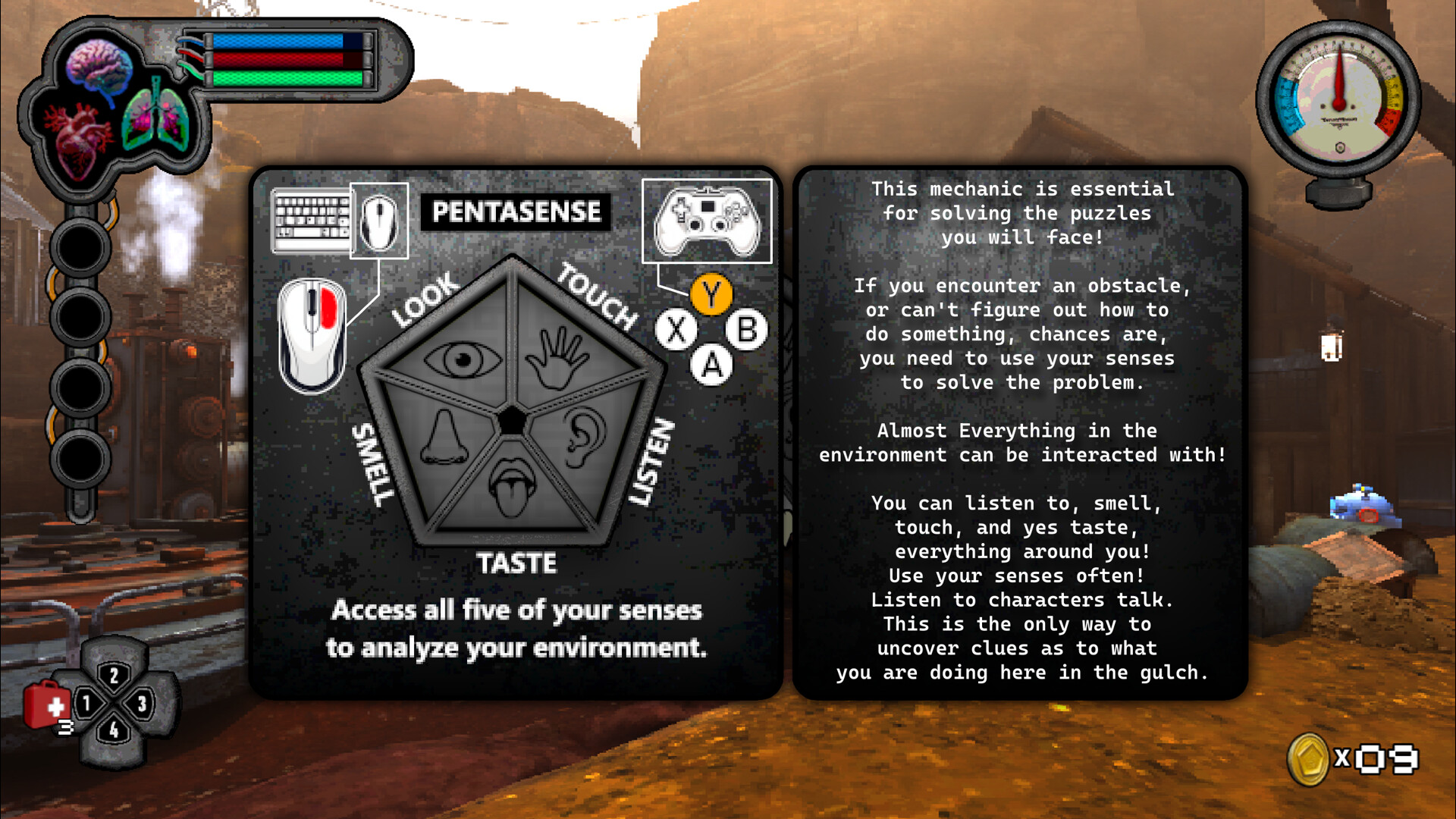 Through a unique five senses system, you’ll explore the Gulch in ways most games never attempt. Look, touch, listen, smell, and even taste your way through a landscape of puzzles, secrets, and growing dread. The further you dig into the routine, the more you’ll realize nothing at the Gulch is what it seems.