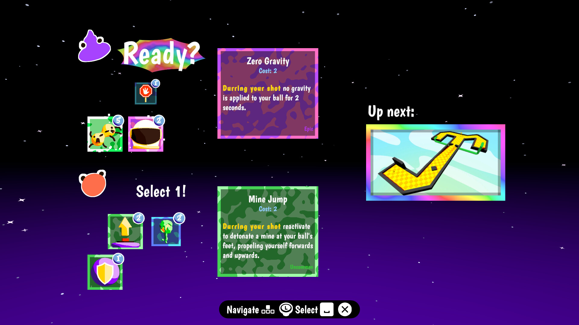 Mix and match items to create your own powerful and unique combos for game breaking shots. Turn the course into your personal parkour playground or an obstacle-filled nightmare for your opponents. Call in airstrikes, play rock-paper-scissors, give your ball wings, place portals… and that’s just the tip of the iceberg.