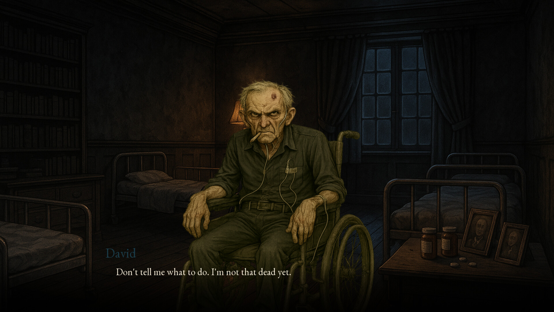 This game contains psychological horror themes, mild violence, and occasional disturbing imagery. There are brief suggestive poses of the main character, one scene with a character in underwear, and another where the same character appears deceased in underwear. This game touches sensible themes such as suicide, mental illness, corruption and murder. Some dialogue includes strong or insulting language. There are also a few jump scares and fourth-wall breaking sequences intended to unsettle the player. No explicit sexual activity or graphic violence is depicted.