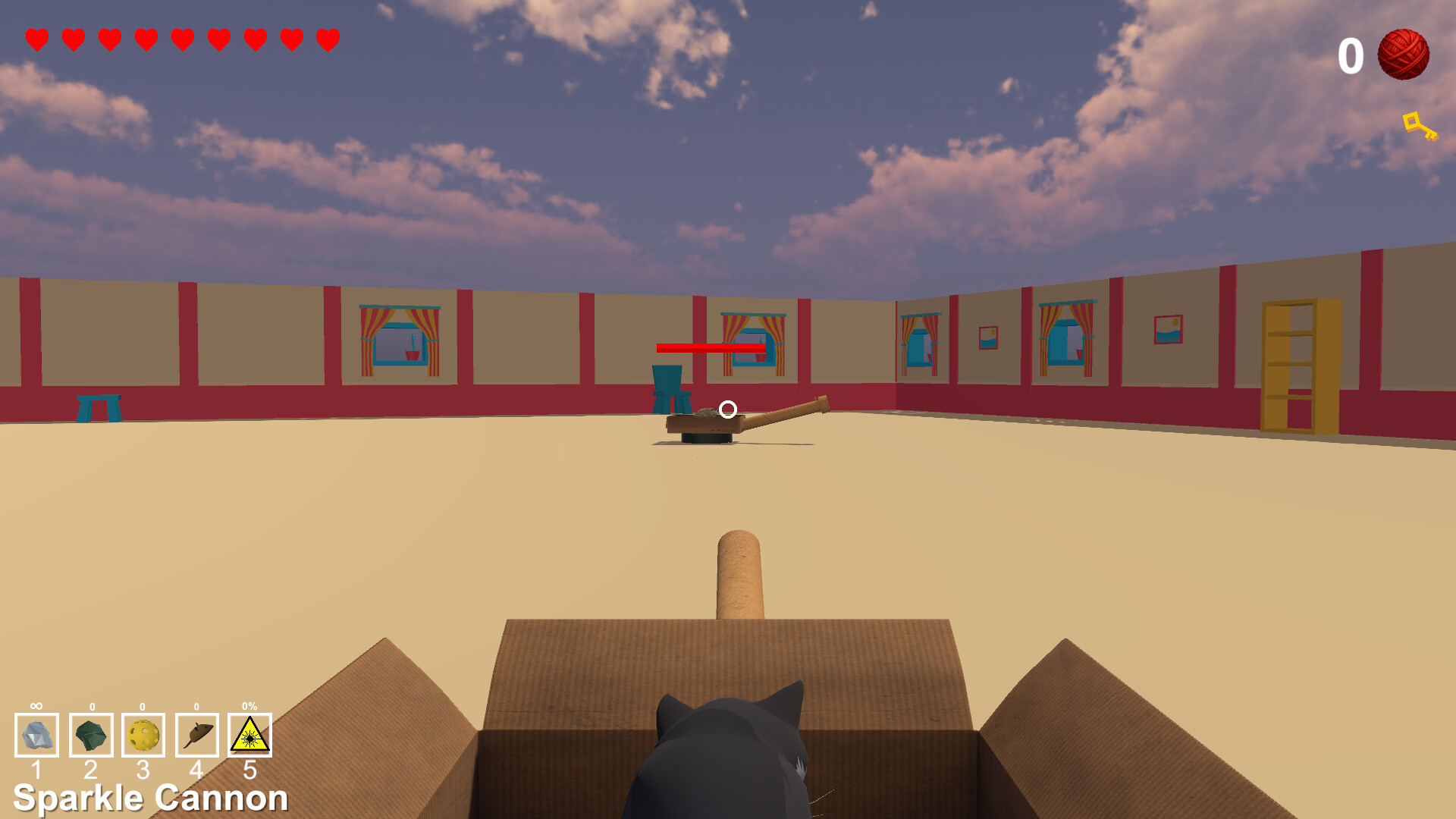 In Purrfekt Tanks you command a cardboard battle-tank mounted on a trusty robot vacuum. Customize your feline crew, collect ridiculous weapons, and roll into chaotic battles for the softest treasure of all – yarn balls! 🧶