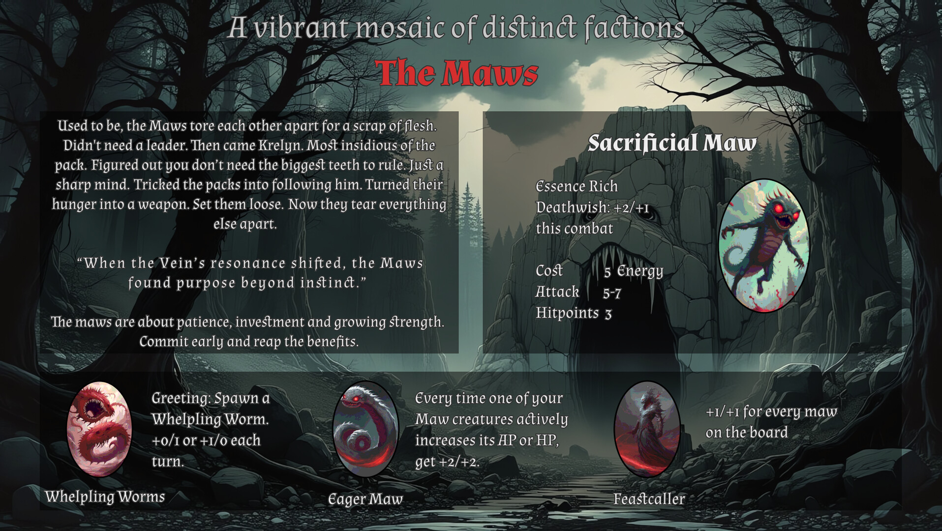 One Last Sacrifice is a tactical autobattler set in the mysterious world of Lith e’ Nai. As a Soul Former, you wield the power to summon creatures, enhance their abilites and command them in battle. But the Arenas of Naskarr are ruthless - only the strongest strategists will survive… and perhaps even escape.