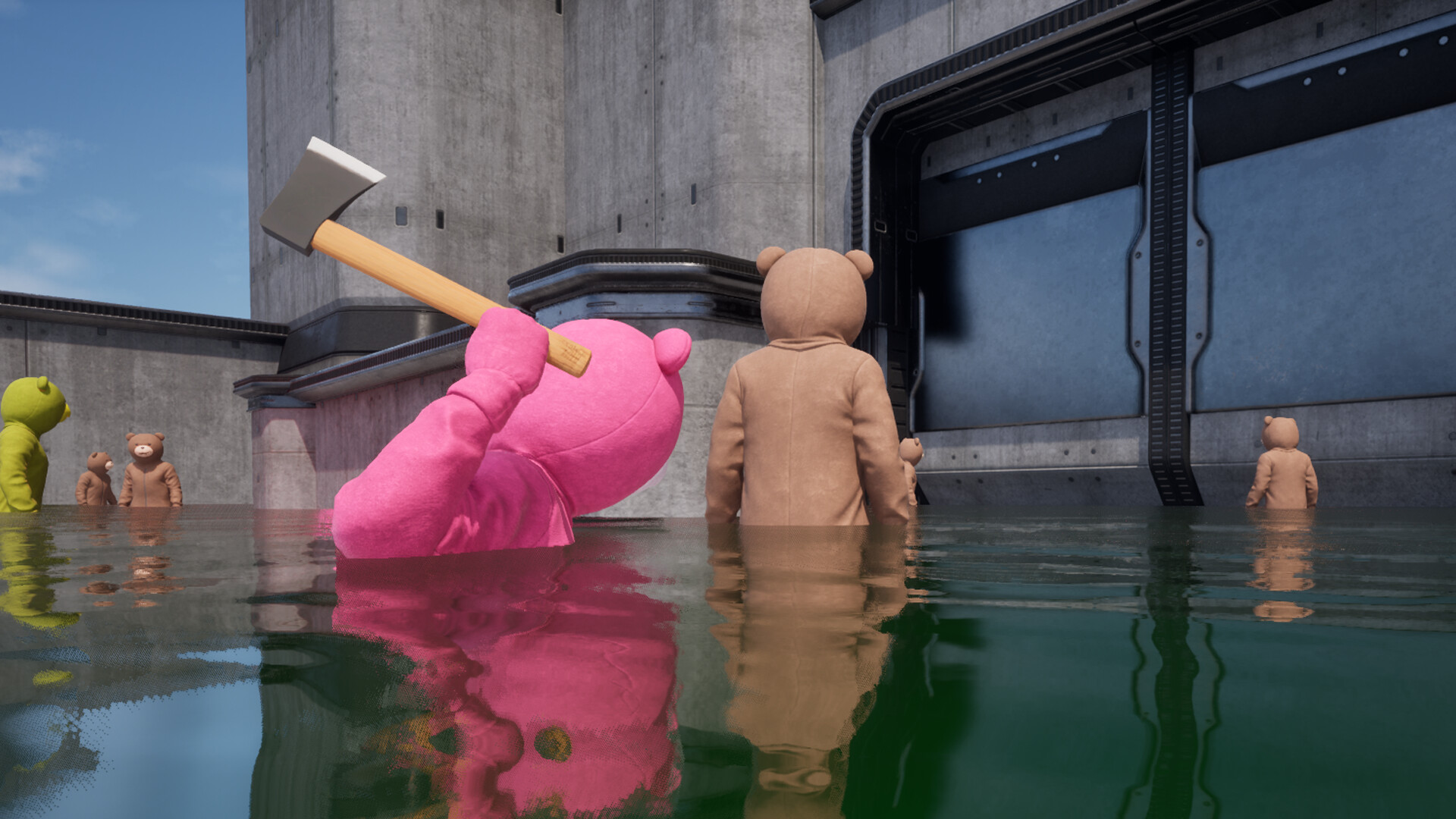 This is a game about disguise. Players are split into two teams—Red and Blue—and must blend into groups of NPCs. To stay hidden, everyone has to act like the NPCs while trying to figure out who the enemy players are and take them out.