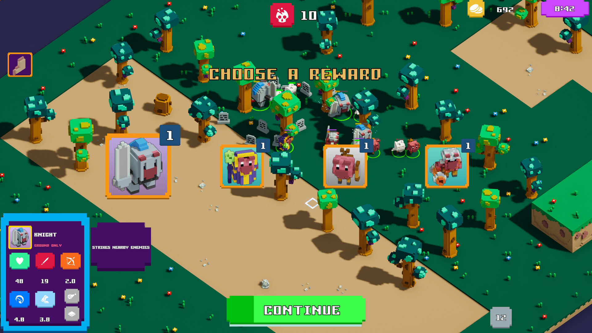 Pig Commander는 각 게임마다 독특한 군대를 즉흥적으로 구성하는 Roguelite 요소가 포함된 실시간 전략 게임입니다. 지휘관을 선택하고 희귀도가 다양한 유닛을 모집하며 예측 불가능한 도전에 맞게 전술을 조정하세요