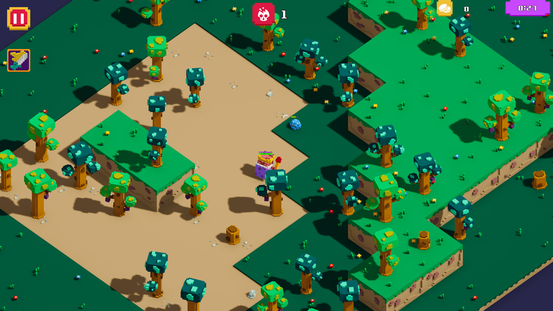 • Voxel-style visuals with a cartoony tone