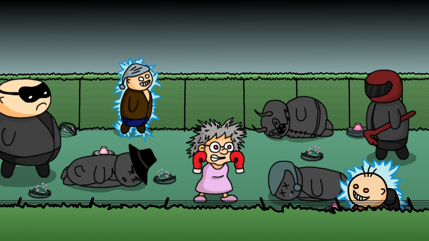 Gran Theft Lure (Demo), or should we say Grand Theft Failure, is a 2D hand-drawn top-down arena shooter roguelite in which you must survive hordes of burglars for as long as you can. You play as your lovely gran, but age, it seems, has finally caught up with you, making you unable to kill your enemies directly with your weapons, as you were used to in your youth... In order to defeat the burglars, you must lure or push them into traps. May it be your electric fences all around your sweet garden, or the bear traps you’ve set around your beautiful flowers, or the hidden landmines that you’ve put in some of your fluffy bushes. "Can't be too careful kid", as my sweet gran used to say.