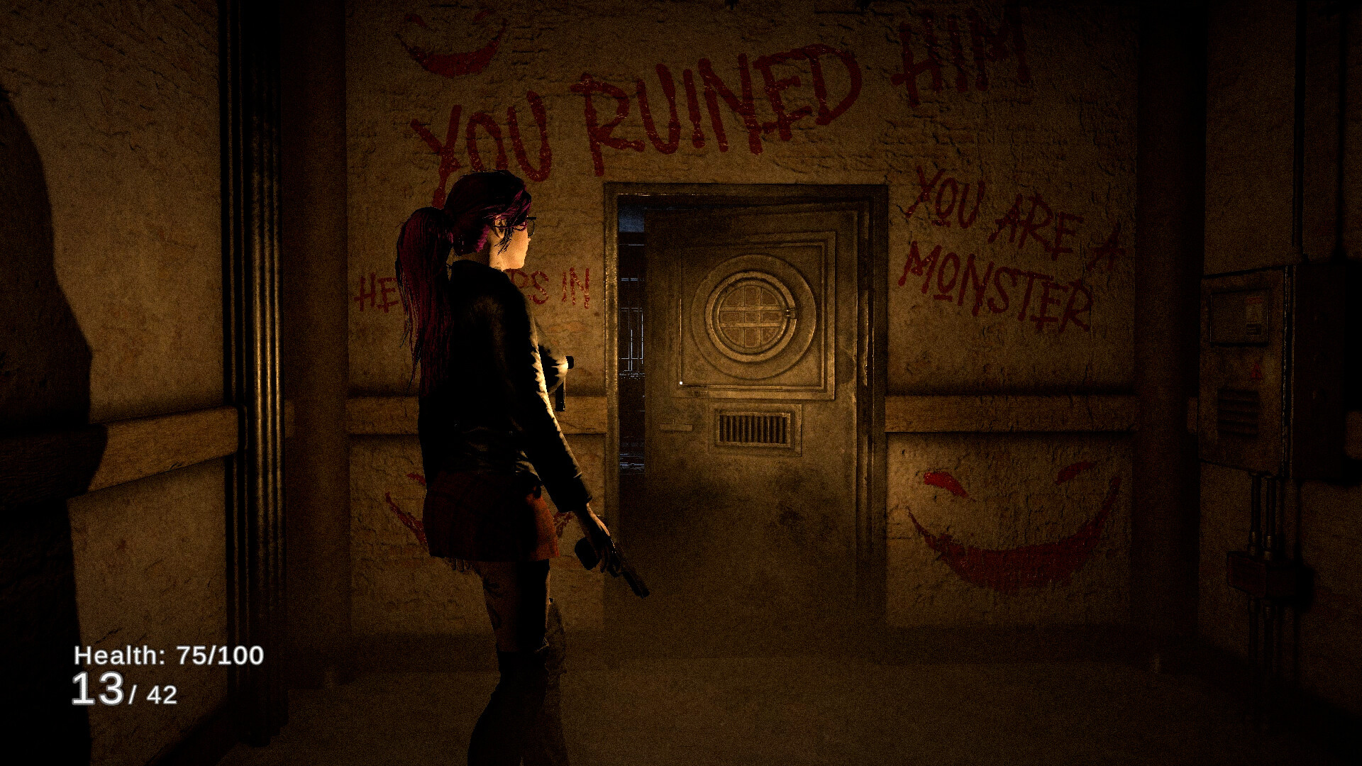 This isn’t just survival — it’s endurance under fire. Players wield an arsenal of weapons — handguns, shotguns, rifles, even hidden weapons — but ammo is scarce and every bullet matters. Combat is intense, brutal, and unforgiving. Between fights, puzzles block the path forward: breaker panels, cryptic notes, and sinister locks tied to apocalyptic prophecy. Each solved puzzle pulls Violet deeper into the madness, where no room feels safe and no hallway is empty.