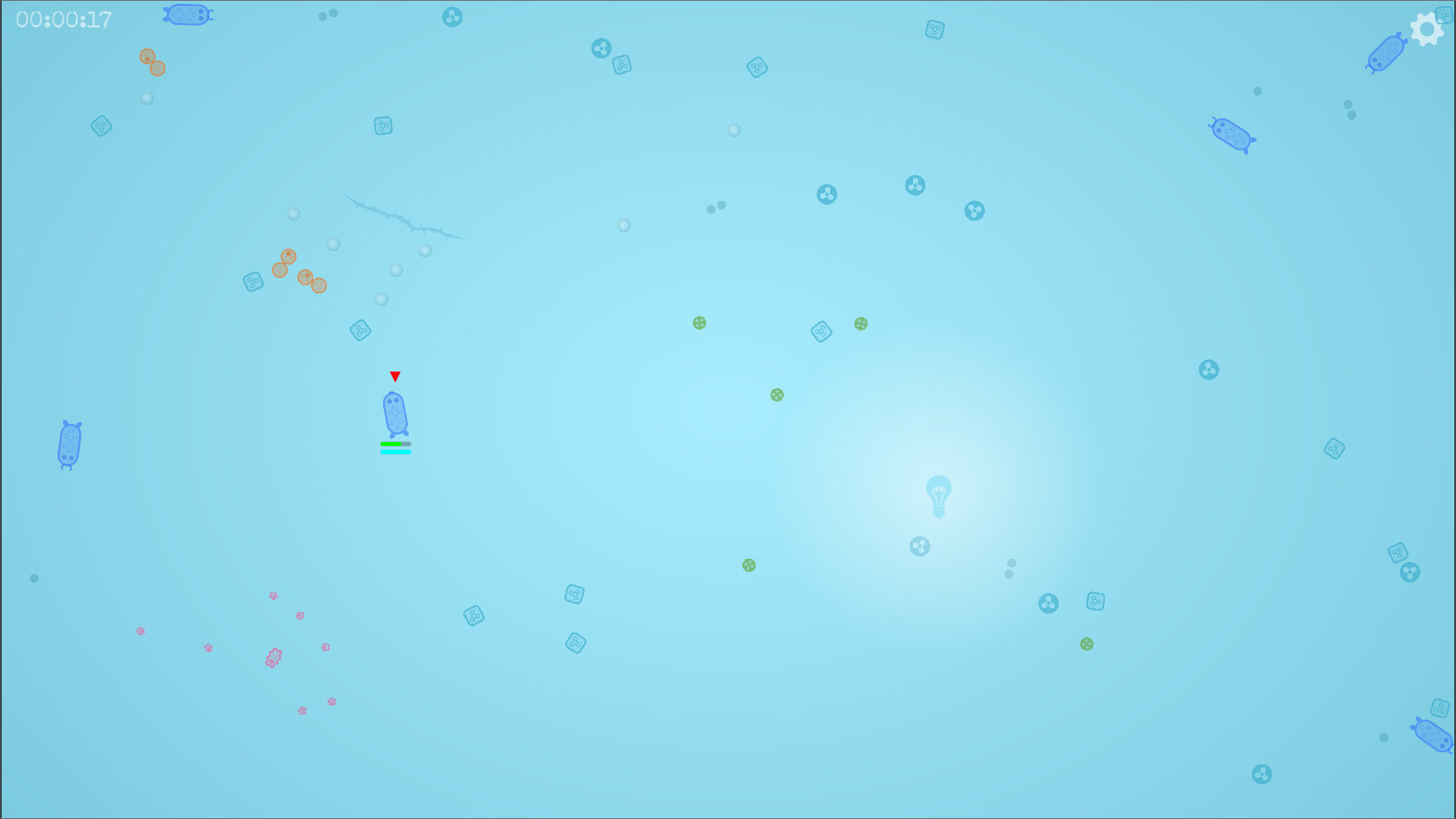 Enter the world of tiny, virtual protozoa. Take control of one in free play to just explore or attempt to outlast another in a variety of custom boards. The controls are simple, but in the spirit of experimentation you'll have to figure them out on your own by playing...