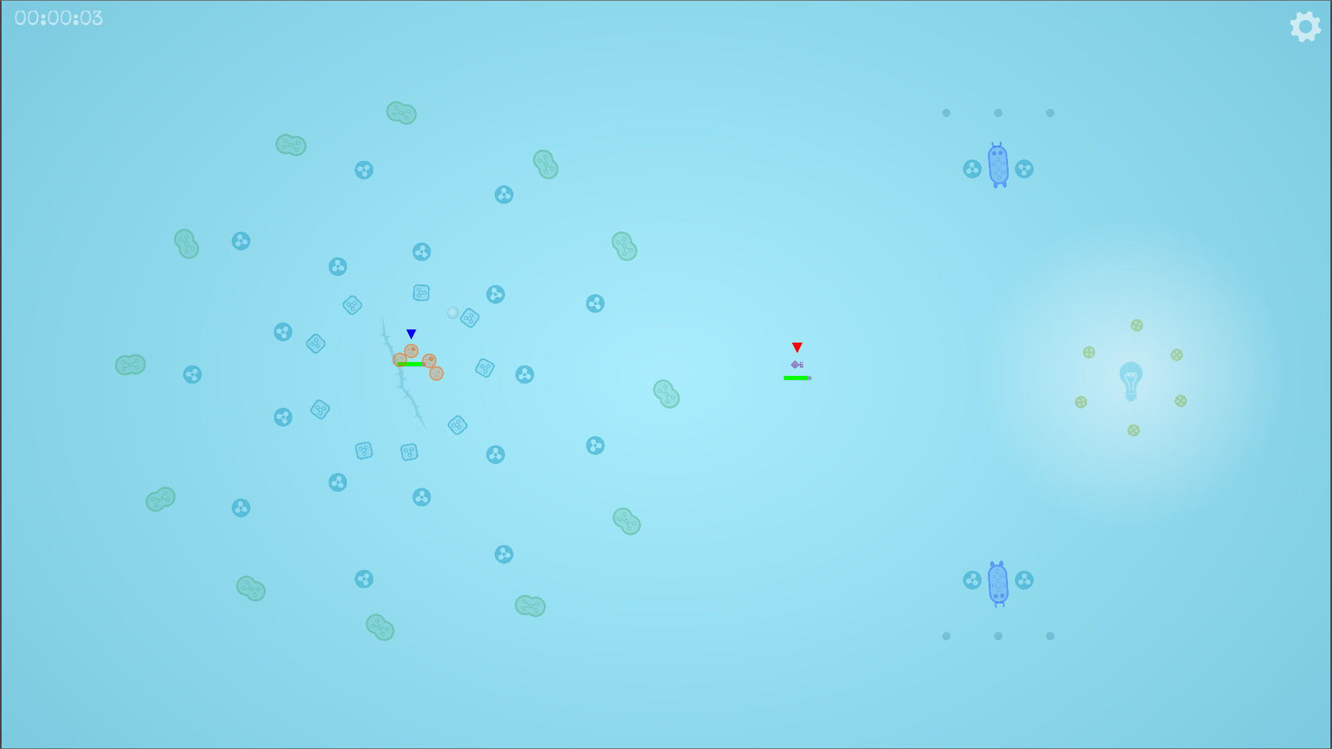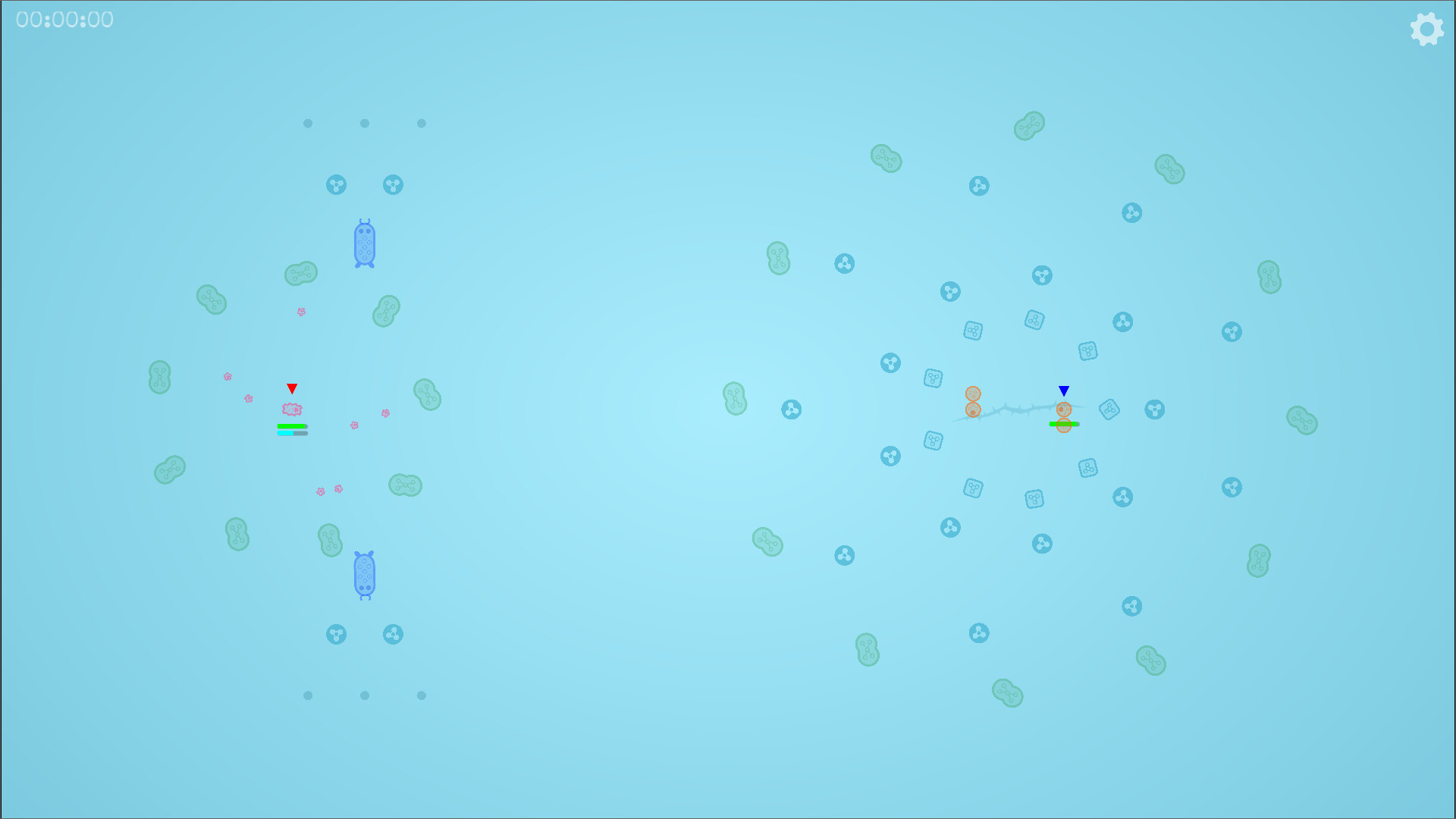 Enter the world of tiny, virtual protozoa. Take control of one in free play to just explore or attempt to outlast another in a variety of custom boards. The controls are simple, but in the spirit of experimentation you'll have to figure them out on your own by playing...