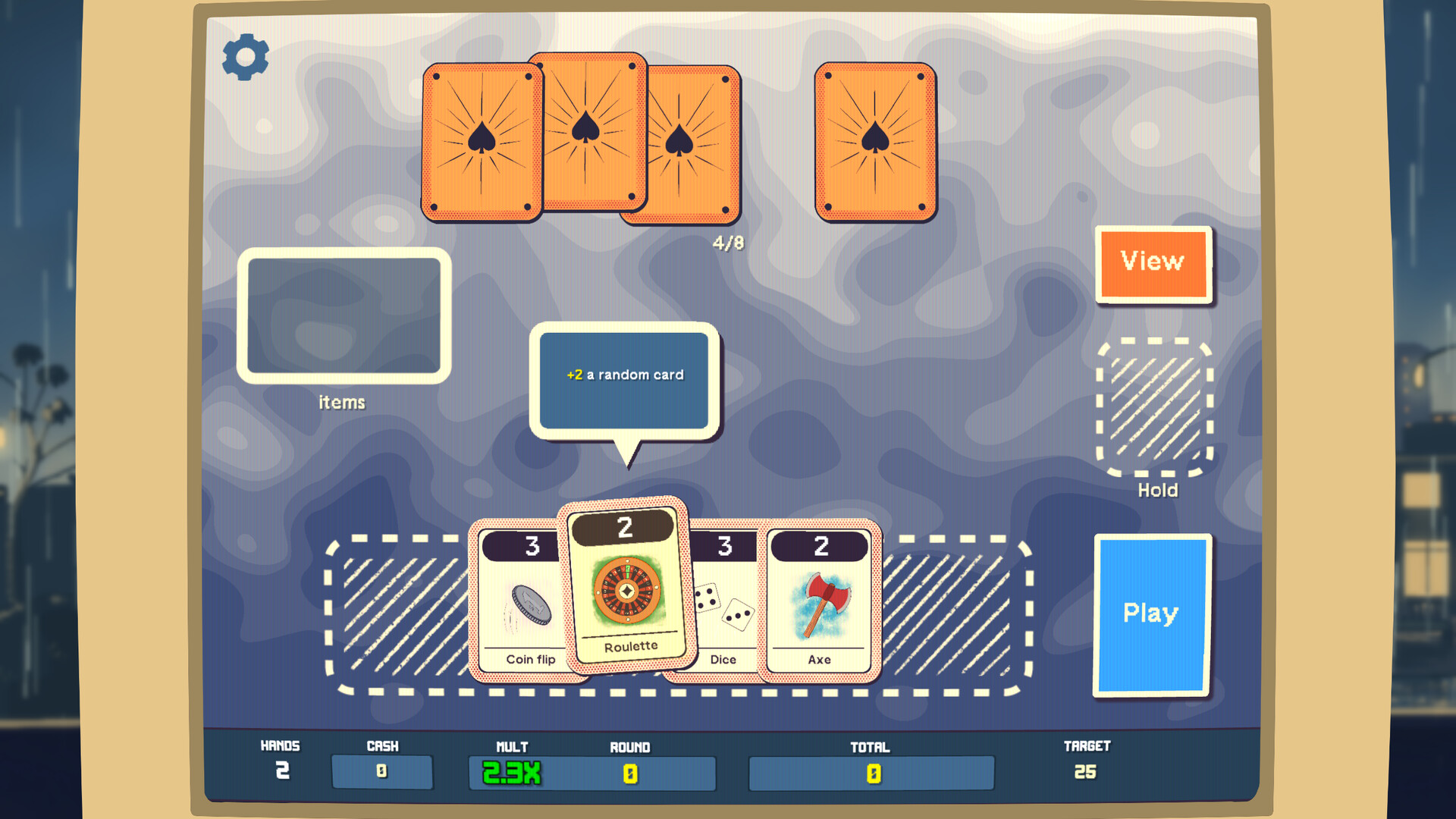 Iskabon is a roguelike deckbuilder set at the turn of the millennium, where a mysterious Y2K Bug has taken over your computer. Upgrade your deck, build your hand, and trigger powerful synergies to win big—and maybe take back control. Also, it's raining outside.