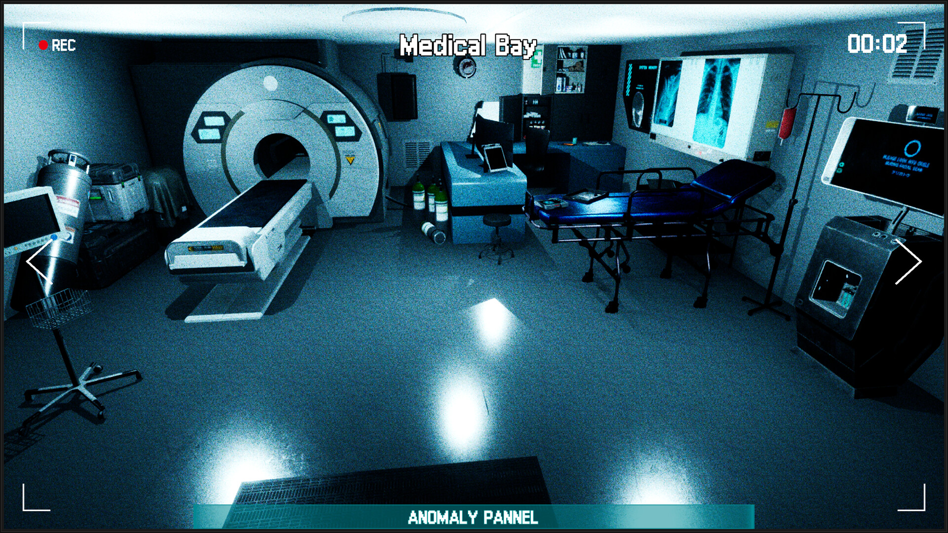 The year is 20XX. As an astronaut assigned to monitor unexplained anomalies, your mission is to watch over the ship while the rest of the crew is away on an expedition. From midnight to 03:00 A.M., you must observe every corner of the vessel through CCTV cameras, detecting and reporting even the slightest change.