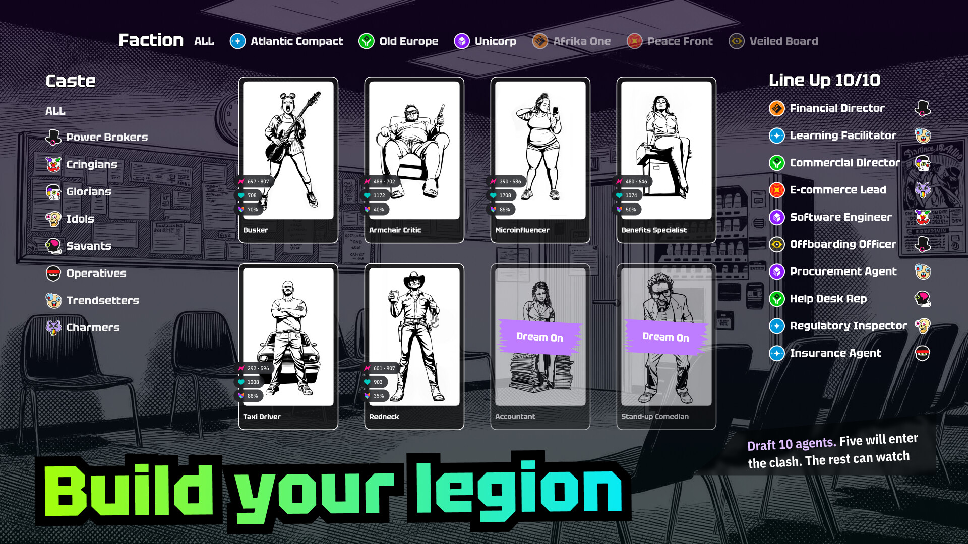 Every agent has a distinct role and power. Their skills shift momentum and decide the outcome.