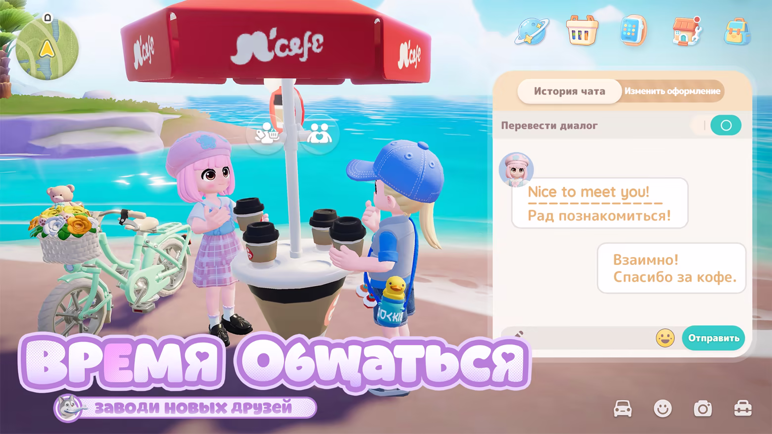 Разве может жизнь быть веселой без друзей? В городке вы можете мгновенно встречаться со старыми друзьями, разделяя радость каждого дня. Уникальные эмоции и действия, богатое социальное взаимодействие сделают вашу дружбу и эмоциональную связь еще теплее. Будь то праздник или простая беседа — наслаждайтесь временем, где дружба не знает расстояний.
