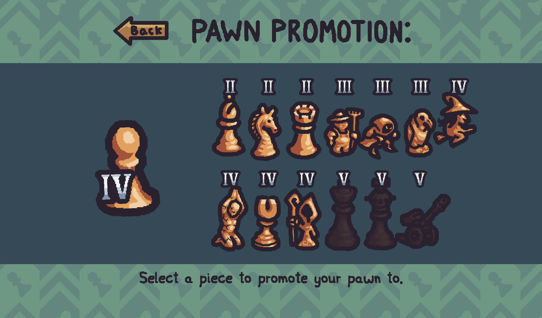 If you run out of gold, don't worry. Normal pawns can be ranked up by capturing multiple enemy pieces with them