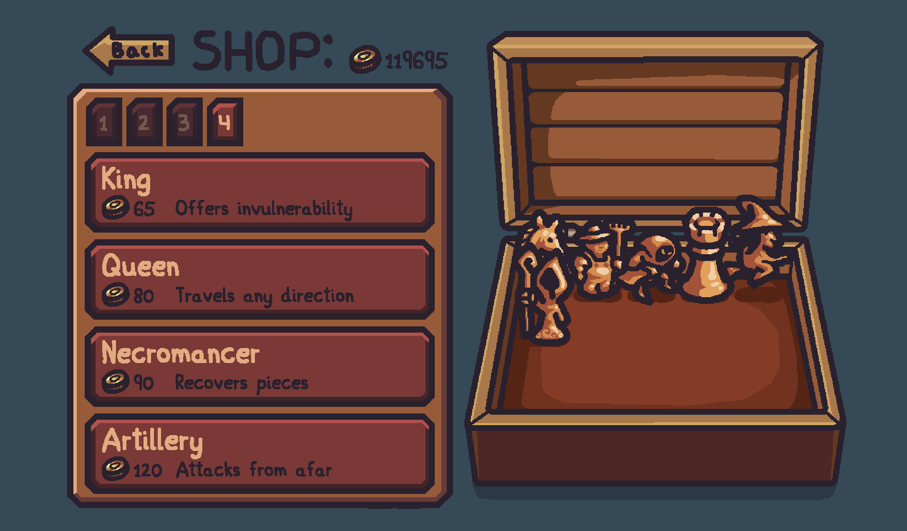 Highly ranked pawns can then be promoted to be better pieces, for free, even when the shop is closed