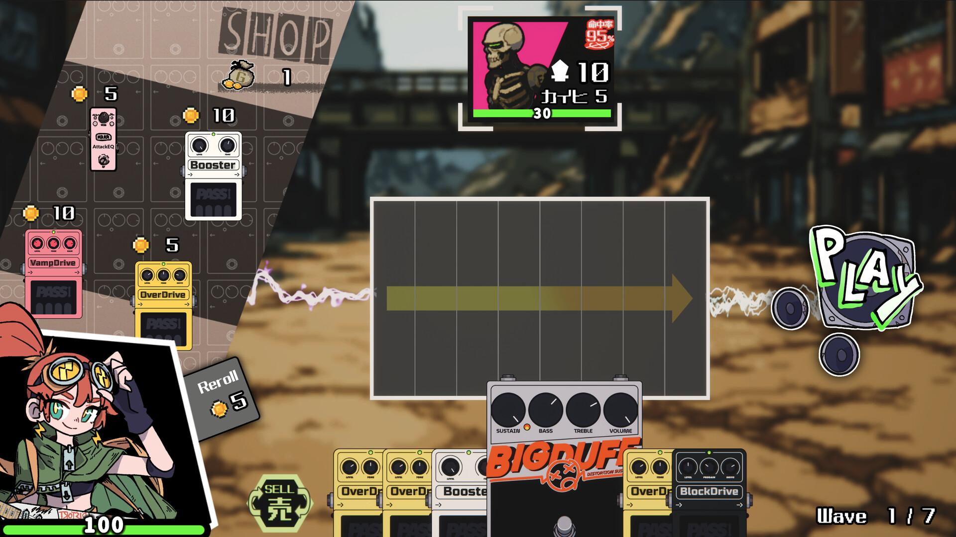 ――Build the nastiest pedalboard,and blast through despair with your sound!―― A single-player pedalboard-building battle game where you rearrange effects pedals on your board to transform your guitar tone and fight with a sound of your own.