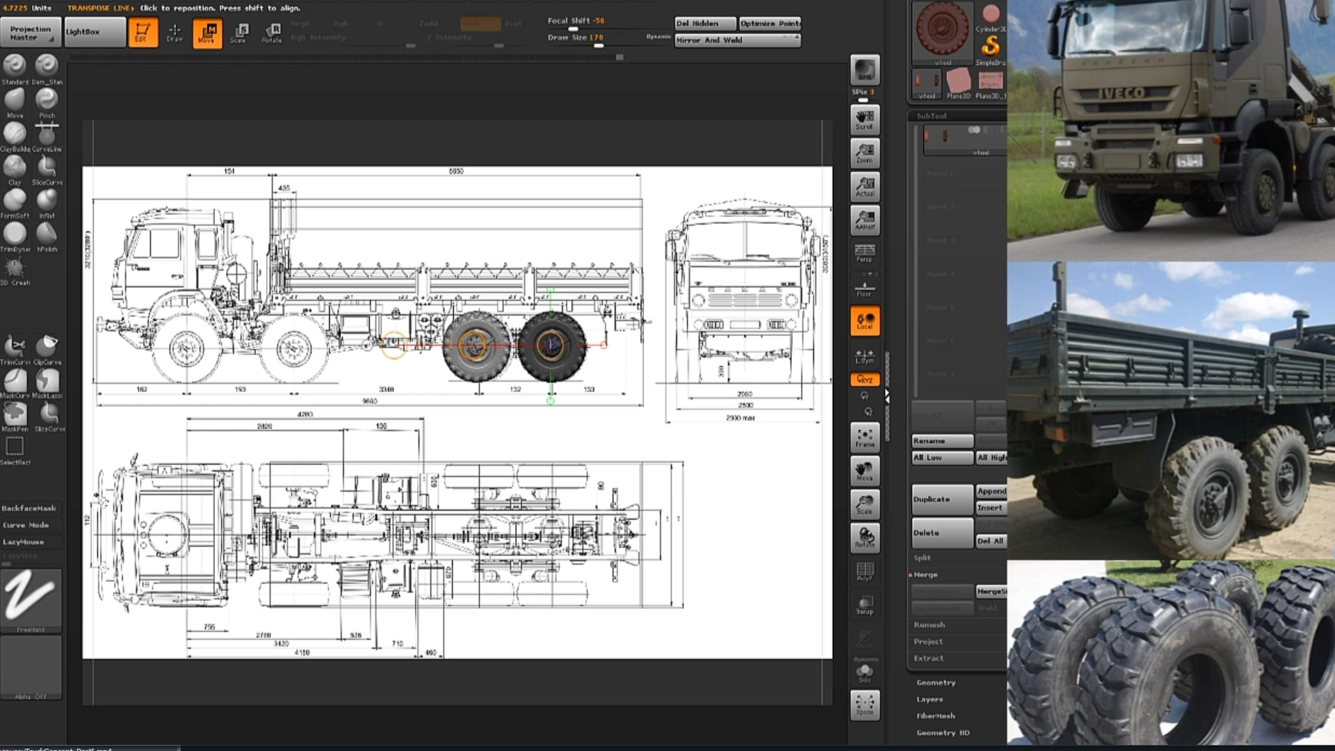 I build a truck in Zbrush using references and discuss hard surface techniques and various tricks used in the pipeline for look development