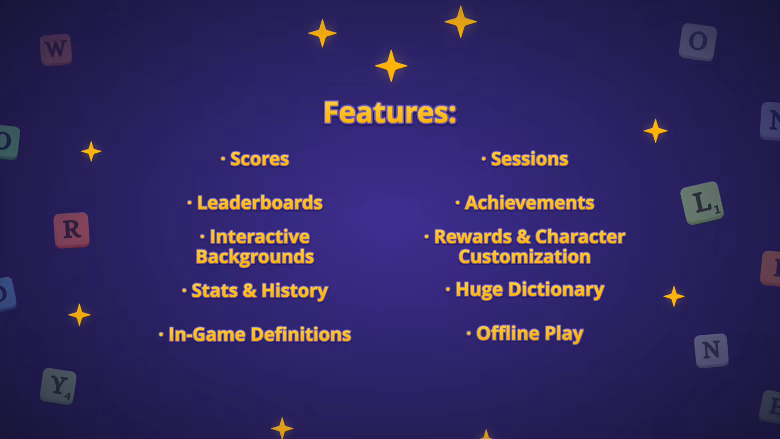 • Singleplayer - endless random words and phrases for infinite replayability, with a huge dictionary of tens of thousands of entries. Play short or long sessions, earn points for the leaderboards or simply relax, learn new words and choose exactly how you want to play!