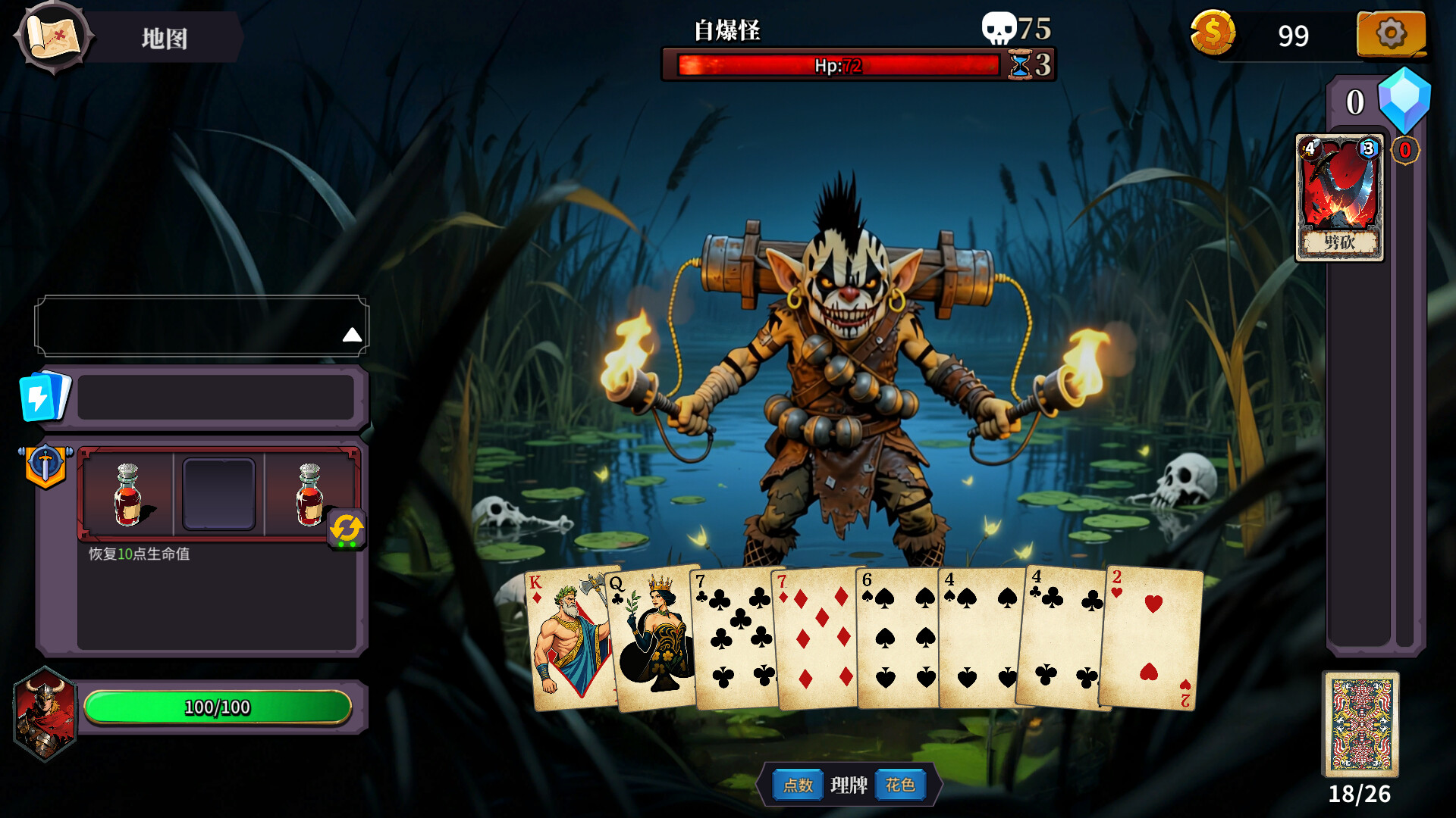 The False God's Fold is a Roguelike turn-based card battle game that blends traditional poker rules with deck-building.