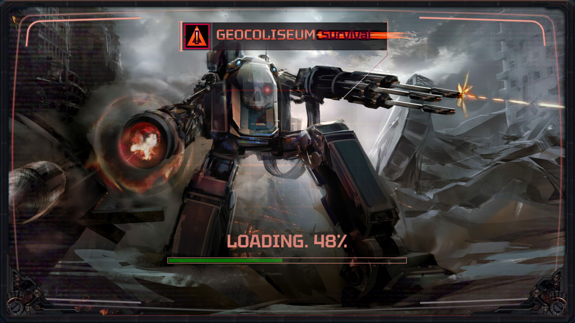 Geocoliseum Survival is a fast-paced arena survival action game where you pilot a highly maneuverable combat mech equipped with automatic weapon systems. The arena offers no respite: enemy waves grow denser, more aggressive, and more dangerous with every minute you survive.