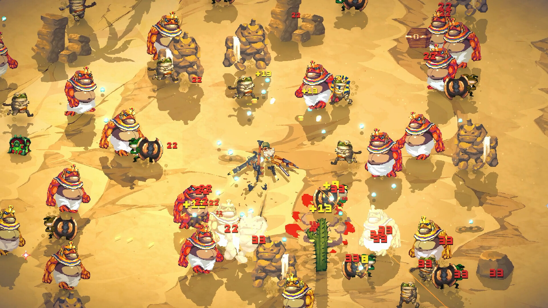 Deze collectie bundelt alle tracks die de energie, absurditeit en snelle actie van het spel aandrijven — van de luchtige melodieën van de eerste runs tot de intense, chaotische beats die de gevechten tegen hordes monsterkikkers en kolossale bazen begeleiden.