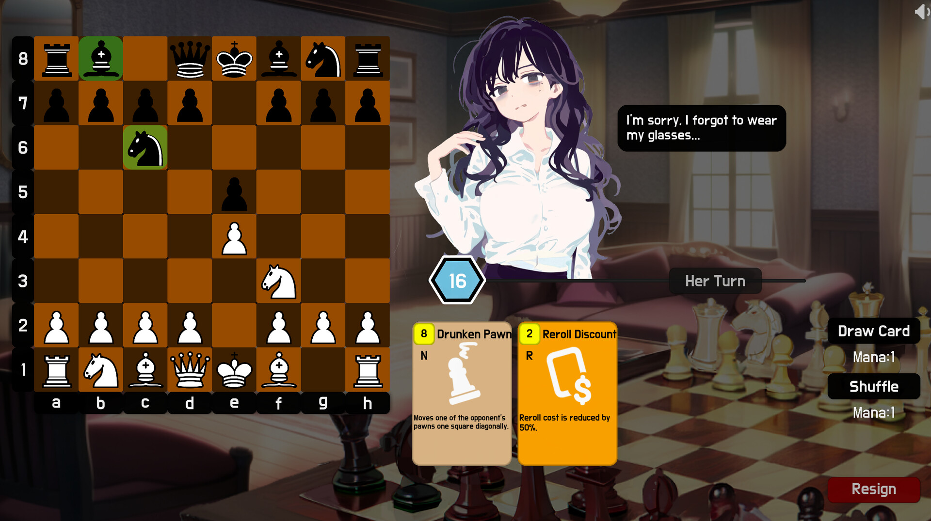 This game is a hybrid strategy title built on turn-based chess rules, layered with mana and spell cards. Your opponent plays standard chess, while you charge mana each turn to transform pieces, move enemy pieces to other squares, or cast buffs and other spells.