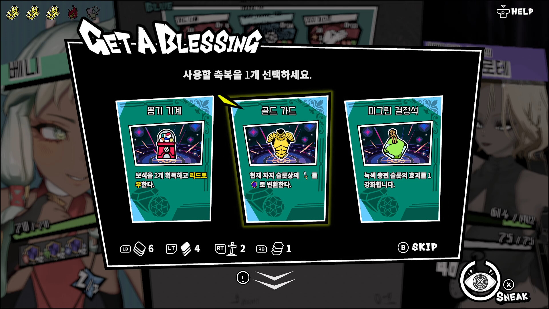 랜덤으로 생성되는 던전 안에서 공격 수단인 "스킬", 배틀을 보조하는 요소인 "블레스"를 모아 최적의 덱을 구성해보자!
