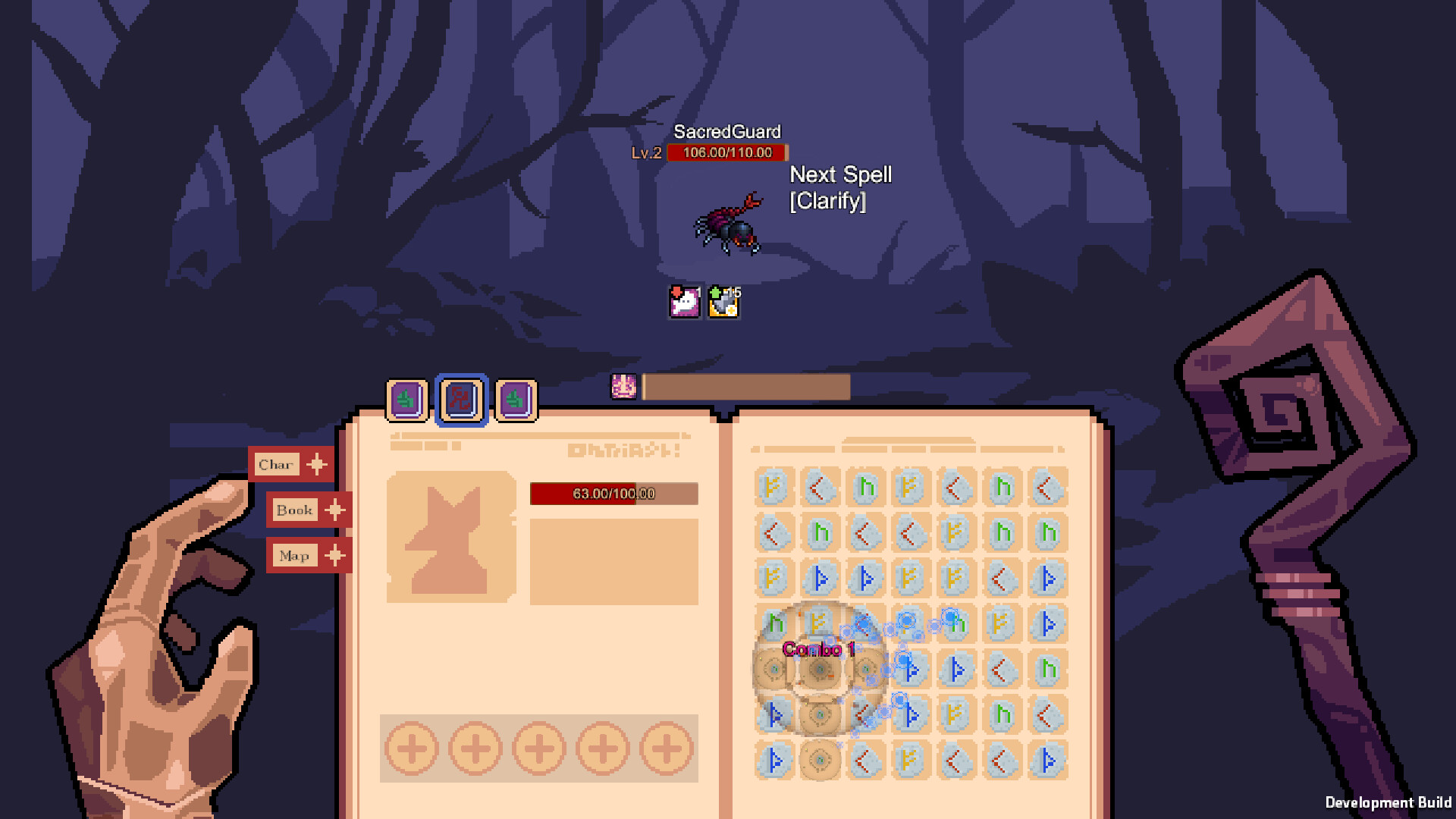 "Wizard's Guide" is a strategic RPG that combines "puzzle" and "rogue-lite" elements. Players act as a wizard who sets off with a magicbook to find a elf he enamored at. Core gameplay is magicbook: activate its pages in various ways to release magic, defeat enemies, progress through the storyline.