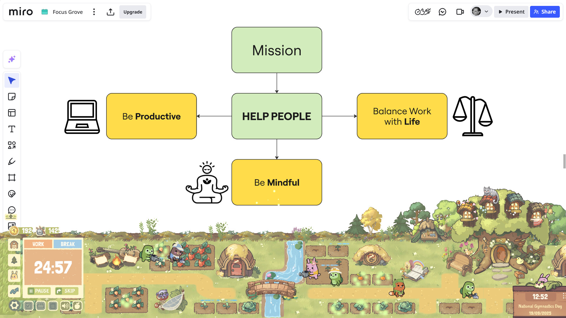 Focus Grove는 단순한 게임이 아닙니다. 하루 동안 집중력과 균형, 그리고 마음의 평화를 유지하도록 도와주는 파트너입니다.