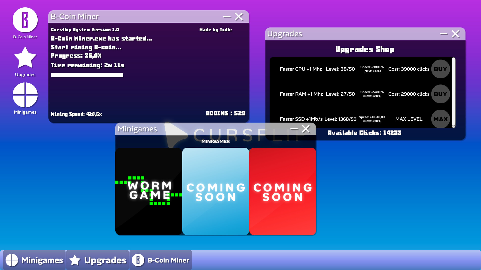 Cursflip is the best and most addictive cursor clicker/idle game on Steam.