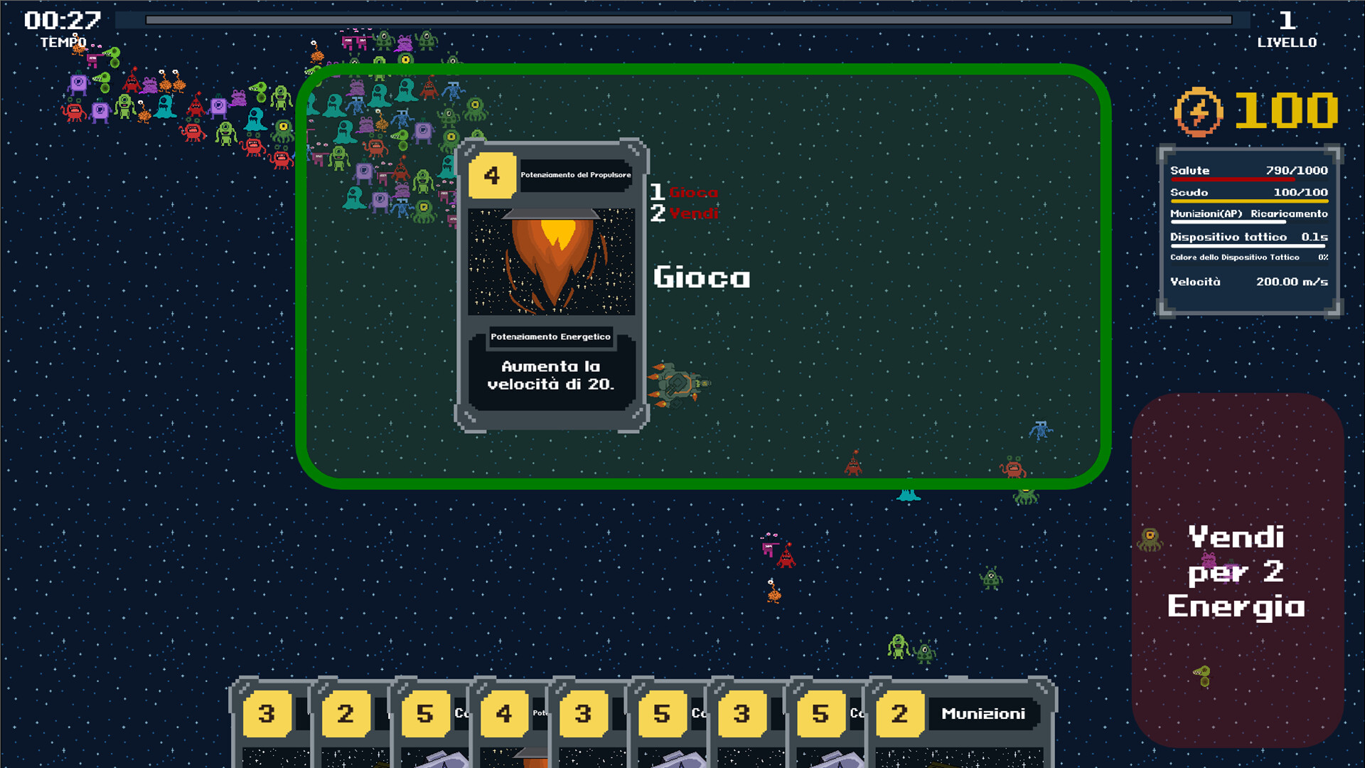 Mentre la tua nave combatte i nemici in pilota automatico, la tua missione è potenziarla continuamente con carte strategiche. In questa esperienza, che premia l’ingegno più che i riflessi, i giusti potenziamenti sono la chiave della vittoria!