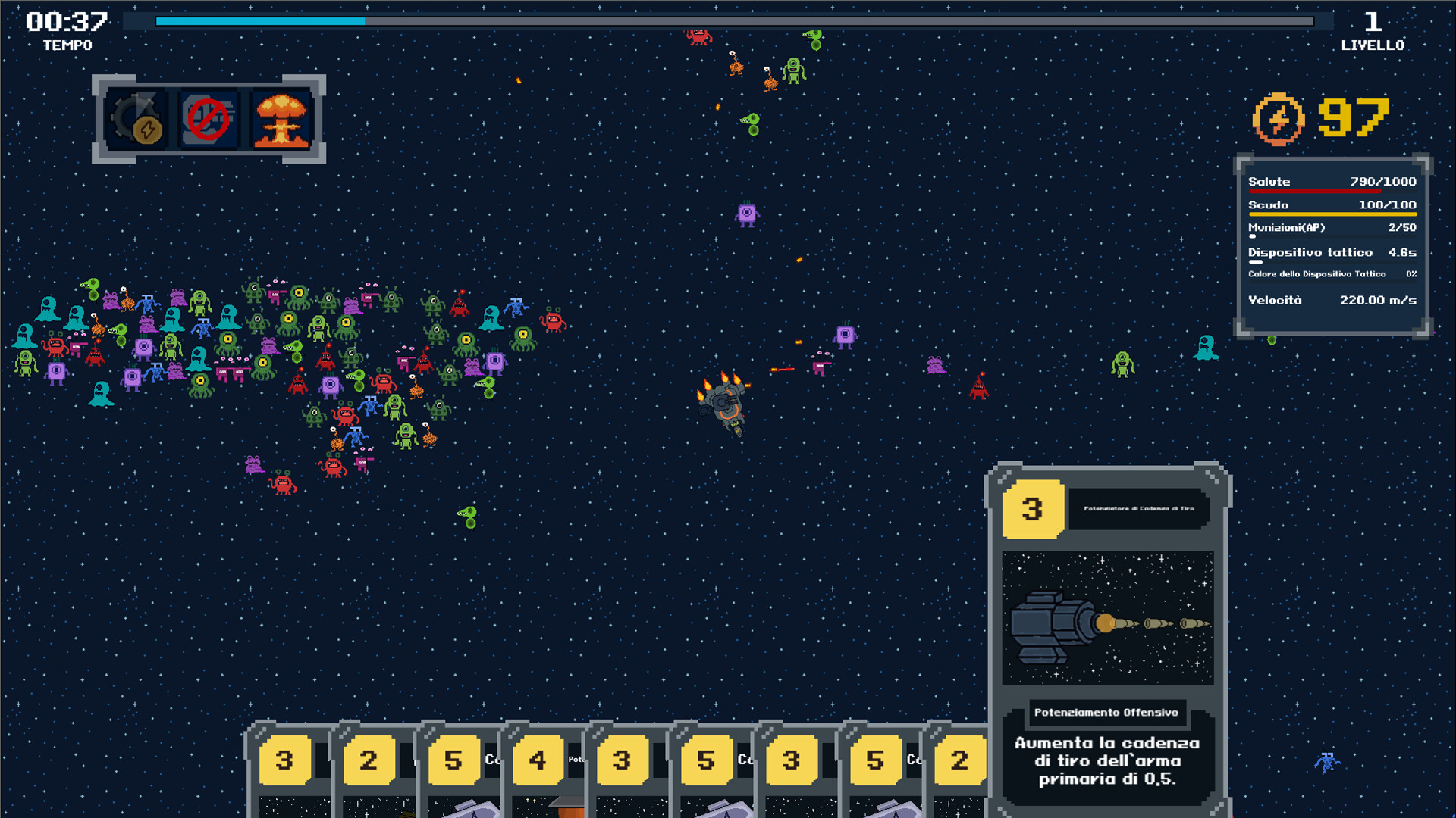 Mentre la tua nave combatte i nemici in pilota automatico, la tua missione è potenziarla continuamente con carte strategiche. In questa esperienza, che premia l’ingegno più che i riflessi, i giusti potenziamenti sono la chiave della vittoria!