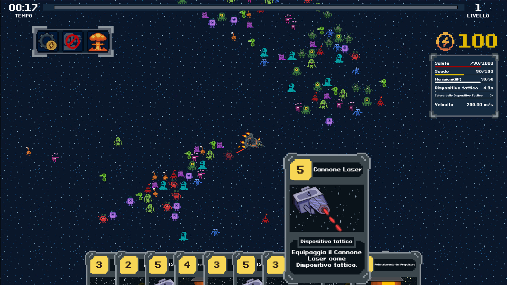 Mentre la tua nave combatte i nemici in pilota automatico, la tua missione è potenziarla continuamente con carte strategiche. In questa esperienza, che premia l’ingegno più che i riflessi, i giusti potenziamenti sono la chiave della vittoria!