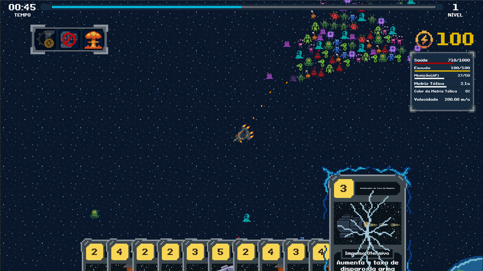 Tu és a mente por trás da nave. Com o teu baralho de cartas estratégicas, vais melhorá-la, reforçá-la e transformá-la numa máquina de guerra mortal. Cada nova carta desbloqueia uma vantagem — escudos mais fortes, armas mais letais ou manobras mais rápidas. As tuas escolhas determinam se a nave sobrevive… ou se se perde no vazio.