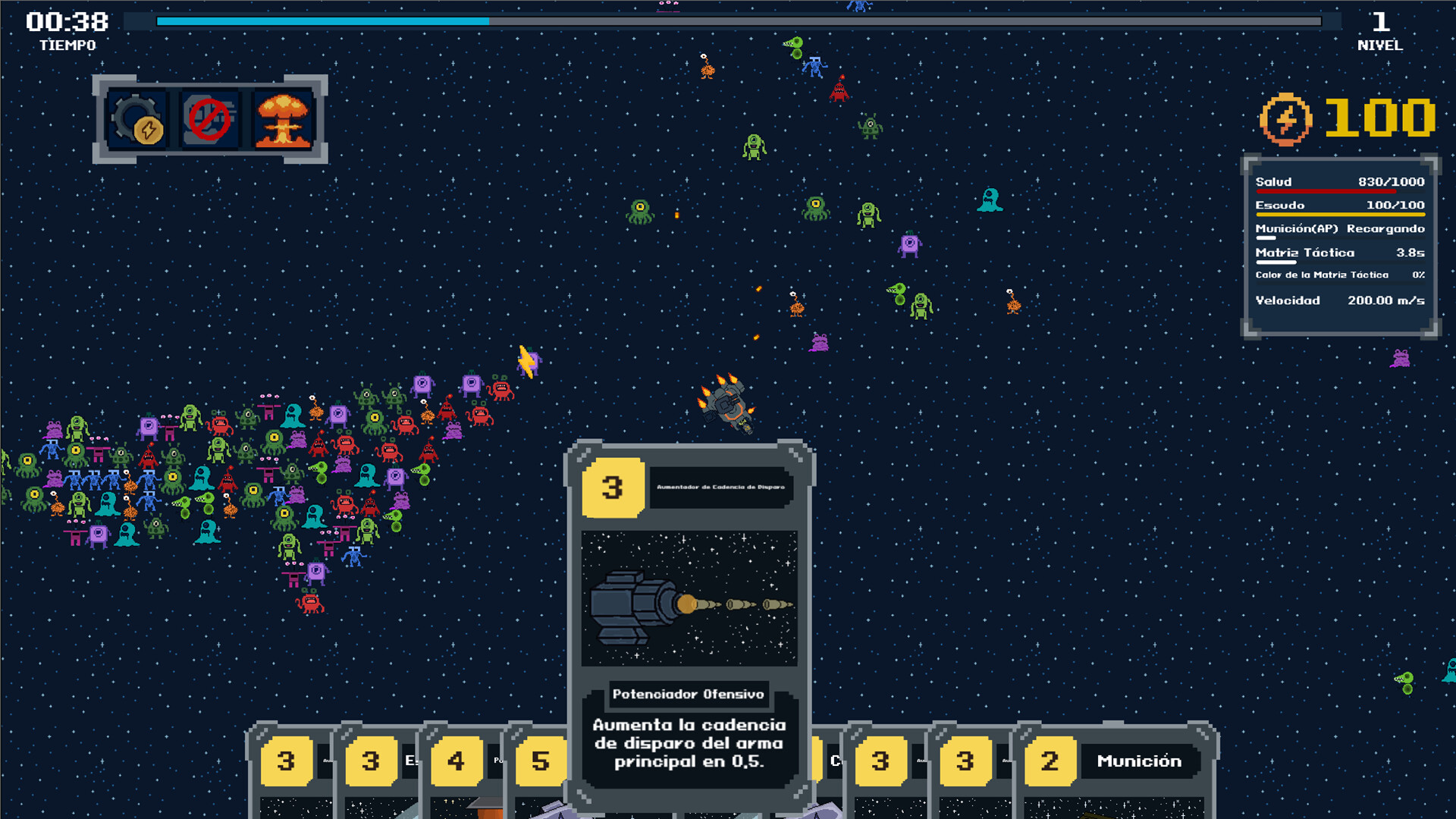 Mientras tu nave combate automáticamente a los enemigos, tu misión es mejorarla constantemente con cartas estratégicas. En esta experiencia, que premia la inteligencia sobre los reflejos, las mejoras correctas son la clave de la victoria.
